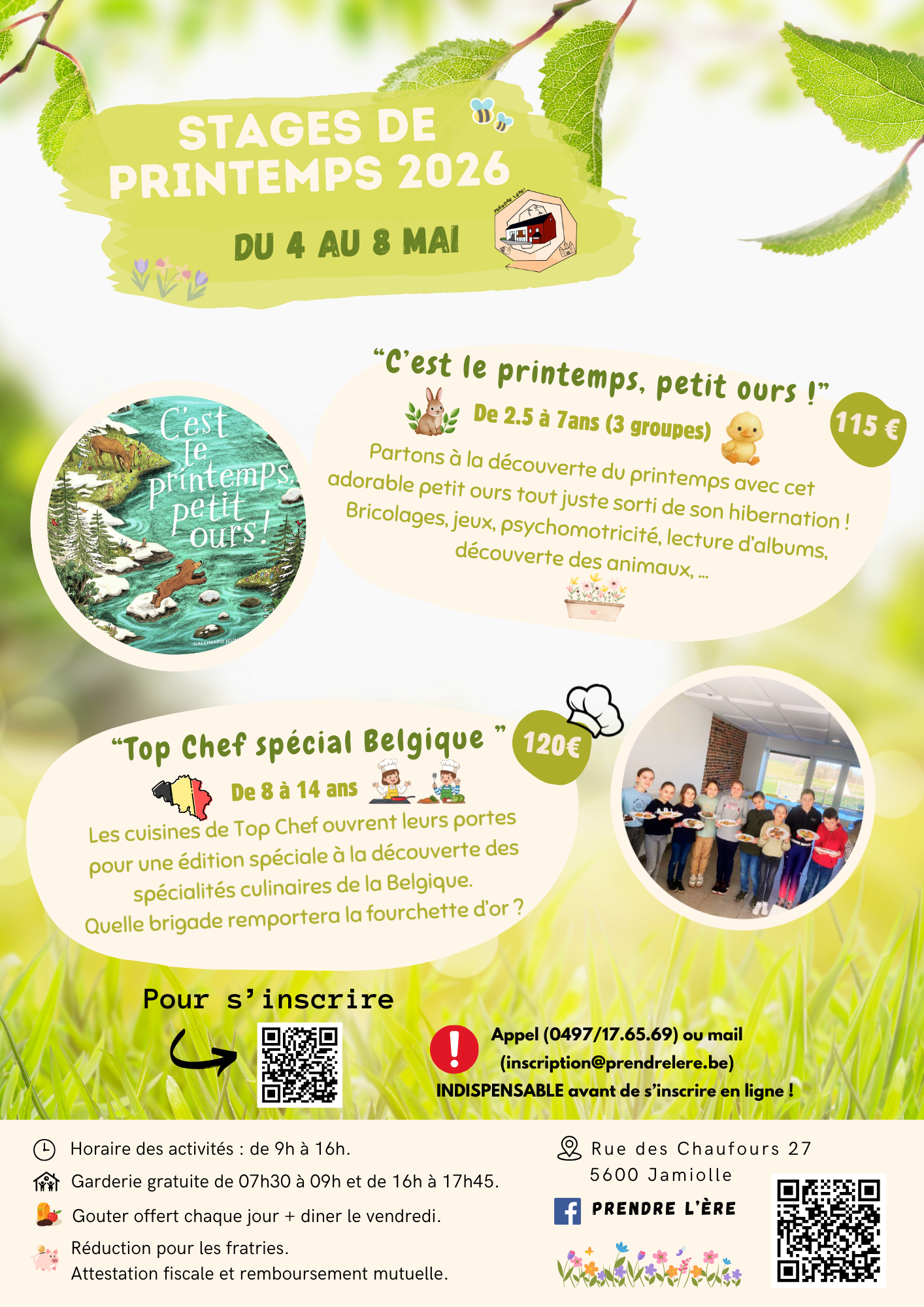 Inscriptions au +32.497/17.65.69 et via l’adresse mail : inscription@prendrelere.be